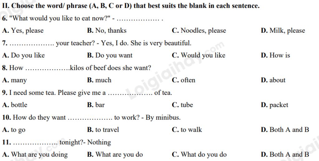 Giải thích: “Bạn giờ muốn ăn gì?” – “ _________.”