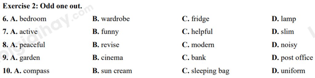 `10 . ` `D` chỉ về quần áo `-` còn lại chỉ những vật dụng cho buổi cắm trại