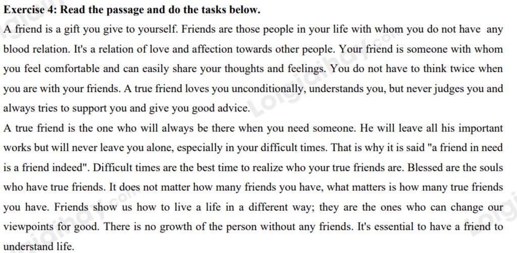 ⇒ Your friend is someone with whom you feel comfortable and can easily share your thoughts and feelings.