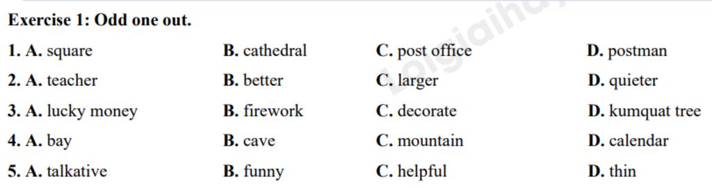 `-` chỉ đồ vật trong ngày tết còn lại chỉ địa điểm du lịch