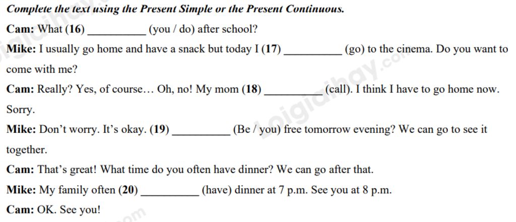 `-` `H`iện Tại Đơn – `Đ`ộng từ thường: