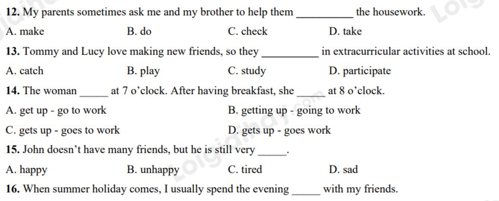 `->` do the homework : làm việc nhà