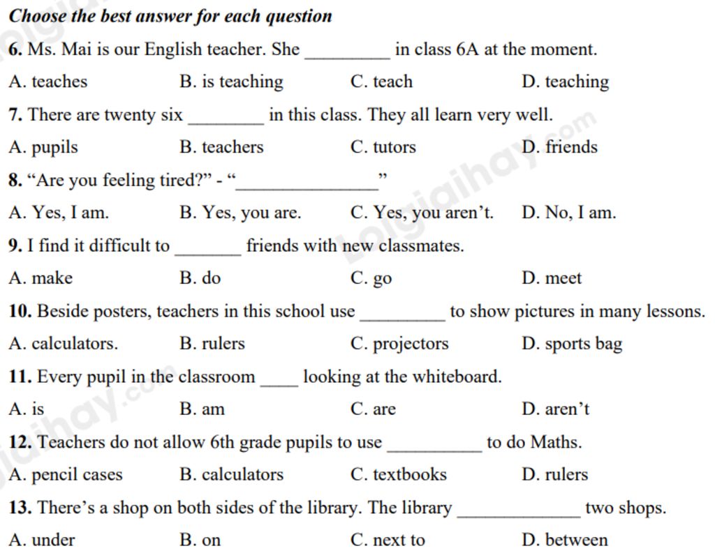 6. Ms. Mai is our English teacher. She _________ in class 6A at the moment.