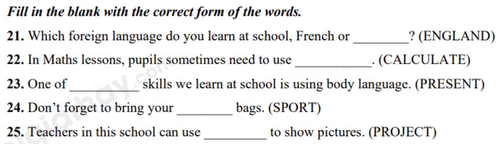 `21.` English (n): Tiếng Anh