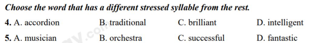 4. A. accordion B. traditional C. brilliant D. intelligent