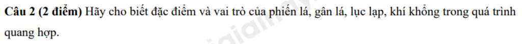 + Vai trò: Làm carbon dioxide, oxygen, hơi nước ra vào khỏi lá, giúp quá trình quang hợp diễn ra bình thường