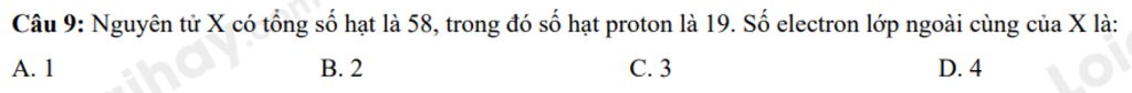 `=>` Nguyên tử `X` có `19e`