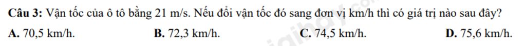 Muổn đổi từ `m``/s->km``/h` ta nhân với `3,6`
