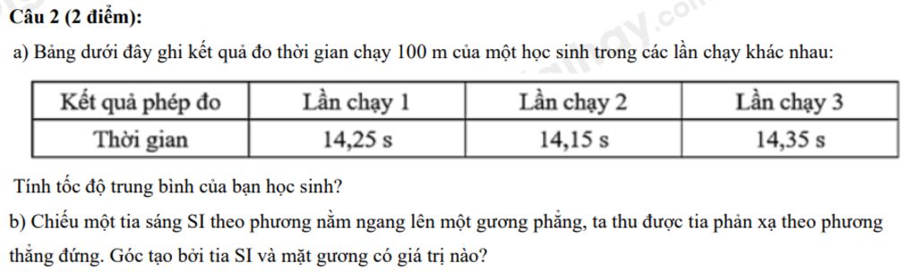 `v_(tb) = (s_1 + s_2 + s_3)/(t_1 + t_2 + t_3) = (100 + 100 + 100)/(14,25 + 14,15 + 14,35) = 300/42,75 ~~ 7,02` (m/s)