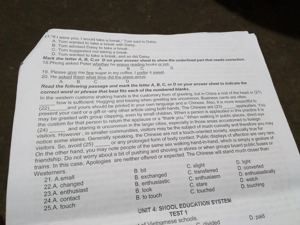 21. C (a slight nod: một cái gật đầu nhẹ)