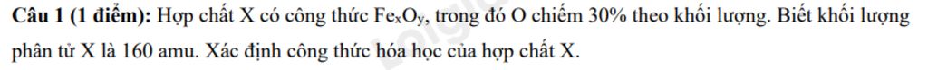 Khối lượng sắt=Khối lượng phân tử−Khối lượng oxy=160amu−48amu=112amu