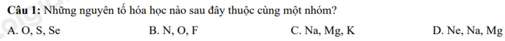 `→` Những nguyên tố: `O;S;Se` là cùng thuộc nhóm `VIIA`