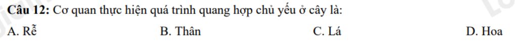 Câu `12: C`. Lá