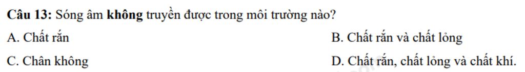 `→` Sóng âm không truyền được qua môi trường chân không.