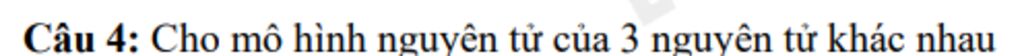 Câu 4: Cho mô hình nguyên tử của 3 nguyên tử khác nhau Từ mô hình của 3 nguyên tử, cho biết