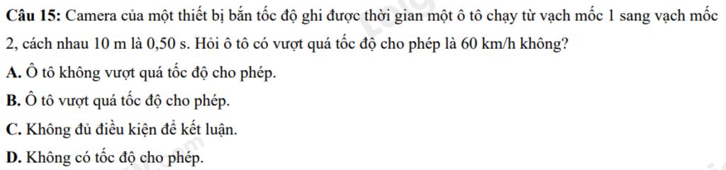 `=>` Chọn `B.` Ô tô vượt quá tốc độ cho phép