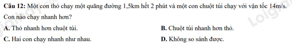 Vì `14>12,5` nên chuột túi nhanh hơn thỏ.