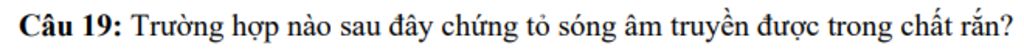 Câu `19:` Trường hợp nào sau đây chứng tỏ sóng âm truyền được trong chất rắn?
