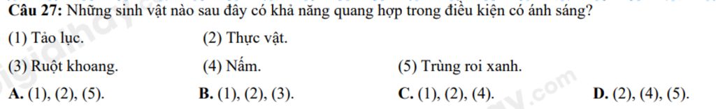 `→` Có chứa chất diệp lục nên có khả năng quang hợp trong điều kiện có ánh sáng