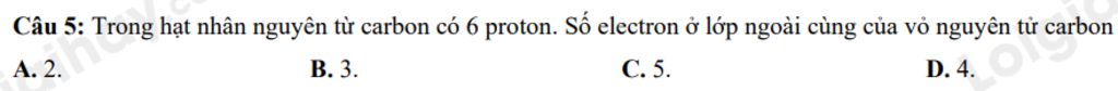 Vậy lớp ngoài cùng của vỏ nguyên tử carbon là `4e`