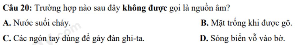 Câu 20: Trường hợp nào sau đây không được gọi là nguồn âm?