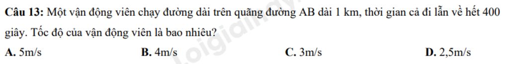 `-` Chọn `\bb D. 2,5 m``/` `s`