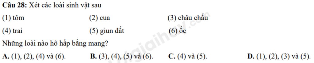 Câu 28: Xét các loài sinh vật sau