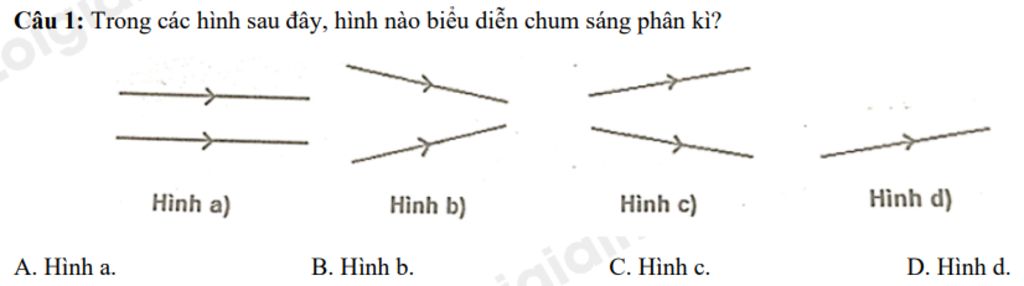 Câu 1: Trong các hình sau đây, hình nào biểu diễn chùm sáng phân kì