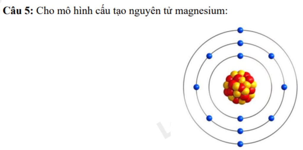 Câu 5: Cho mô hình cấu tạo nguyên tử magnesium: