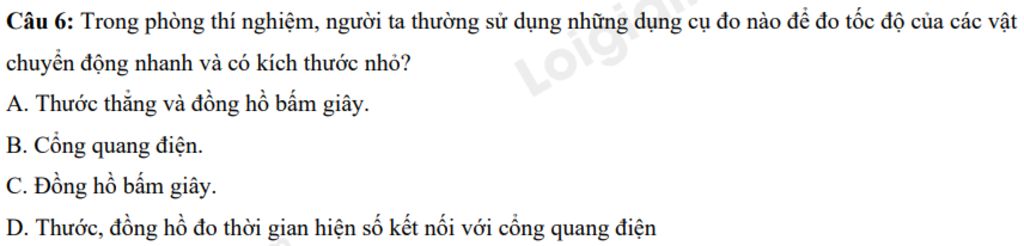 → Người ta thường sử dụng cổng quang điện để đo tốc độ của các vật chuyển động nhanh và có kích thước nhỏ