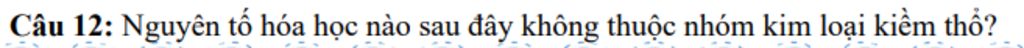 `=>` Caesium là nguyên tố hóa học không thuộc nhóm kim loại kiềm thổ