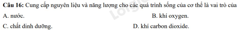 `@` Cung cấp nguyên liệu và năng lượng cho các quá trình sống là vai trò của chất dinh dưỡng.