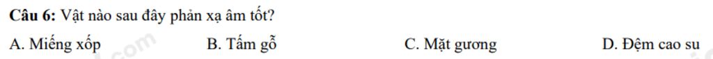 Câu 6 : Vật nào sau đây phản xạ âm tốt ?