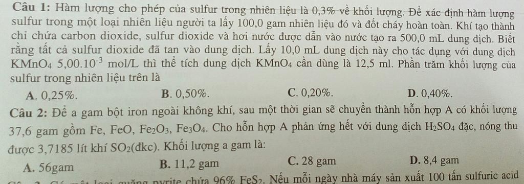 Vậy trong `500ml` lượng `S^{+4}` là `1,5625.10^{-4}.50=1/{128} mol`