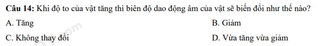 `->`$\text{A}$$\\$`=>`$\text{Khi độ to của vật tăng thì biên độ dao động âm của vật sẽ tăng.}$$\\$$#hoangnam$