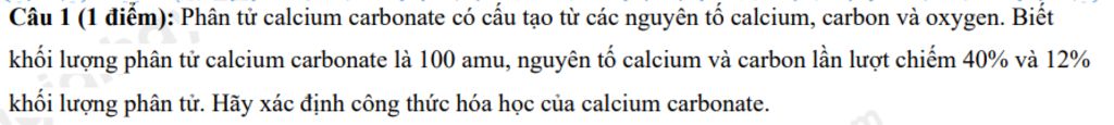 Khối lượng nguyên tố calcium: `100 xx 40% = 40` (amu) `=>` Có 1 nguyên tố Calcium