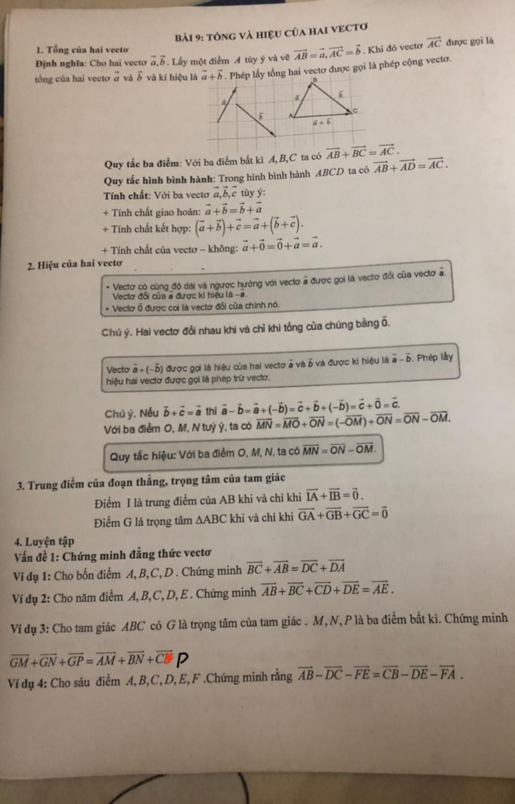 BÀI 9; TÔNG VÀ HIỆU CỦA HAI VECTƠ