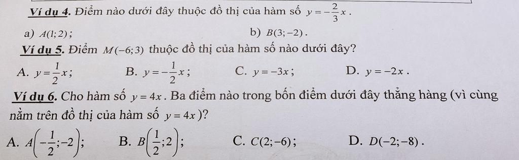 Ví dụ 5. Điểm M(-6;3) thuộc đồ thị của hàm số nào dưới đây?