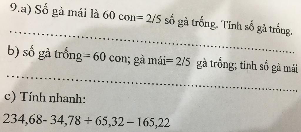 a) Số gà trống là: 60 : 2/5 =150 (con)