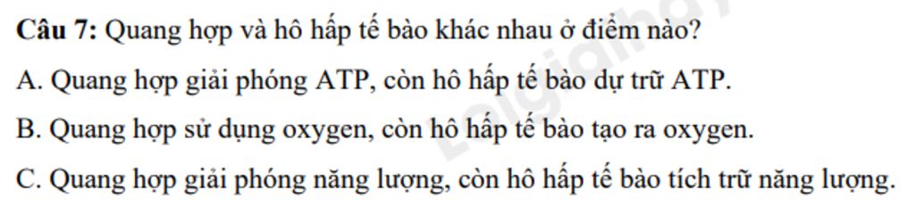 +Quang hợp sử dụng khí Carbon dioxide,còn hô hấp tế bào tạo ra khí carbon dioxide.