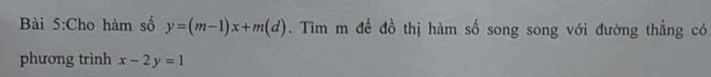 Để `(d)` song song với `y=1/2x-1/2` thì `a=a'` và `b\neb'` nên ta có: