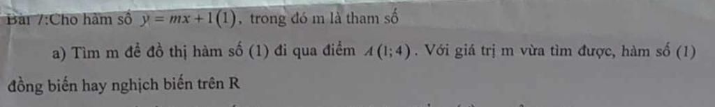 `@` Đồ thị h/s `1` đi qua điểm ` A(1; 4)`