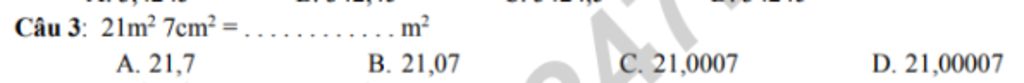 Vậy `21 m^2 7cm^2 = 21,0007 m^2`