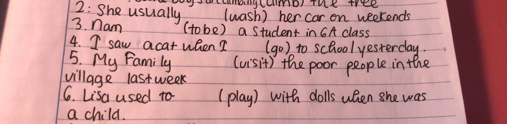 → Thì QKĐ : S + Ved +...;dấu hiệu nhận biết : last week