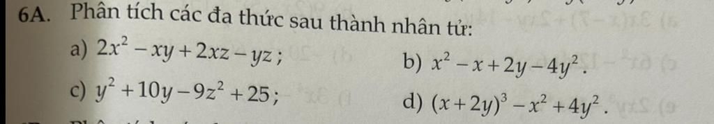`a) 2x^2 - xy + 2xz - yz`