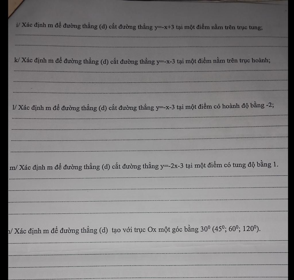 k/ Xác định m để đường thẳng (d) cắt đường thẳng y=-x-3 tại một điểm nằm trên trục hoành;