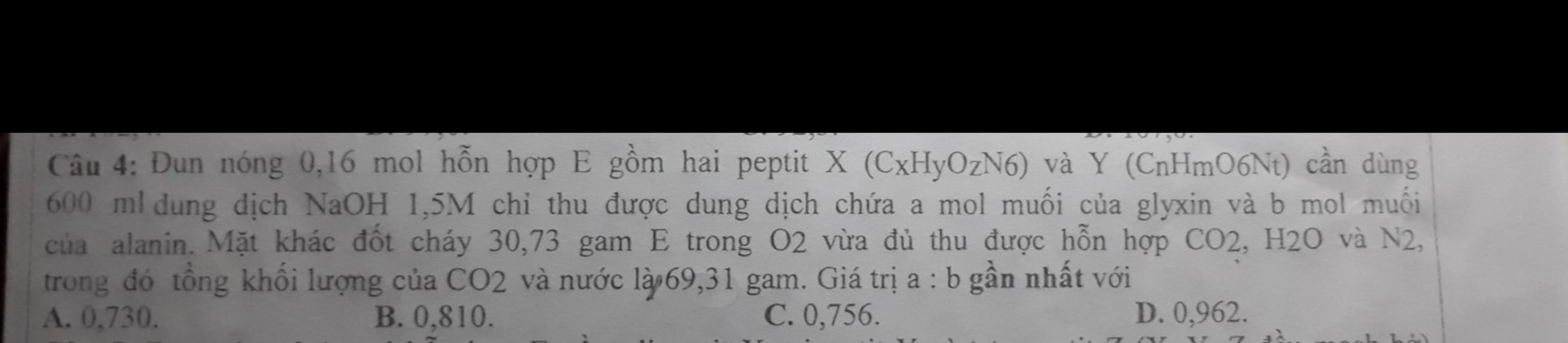 Thuỷ phân $E$ thu được muối của Gly, Ala nên $X, Y$ là các peptit tạo bởi aminoaxit $1NH_2, 1COOH$
