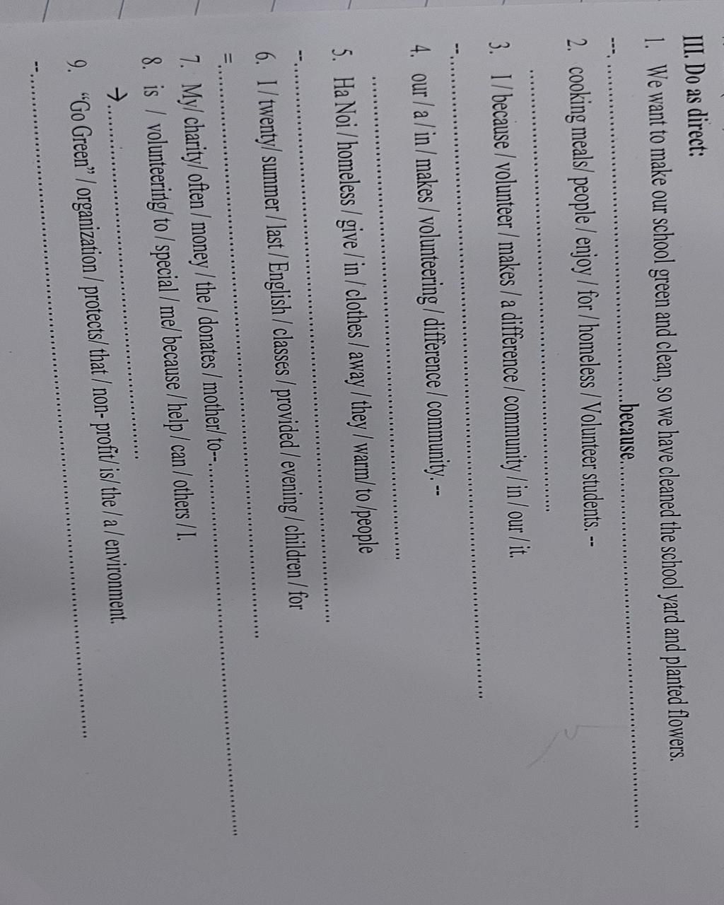 1. We want to make our school green and clean, so we have cleaned the school yard and planted flowers.