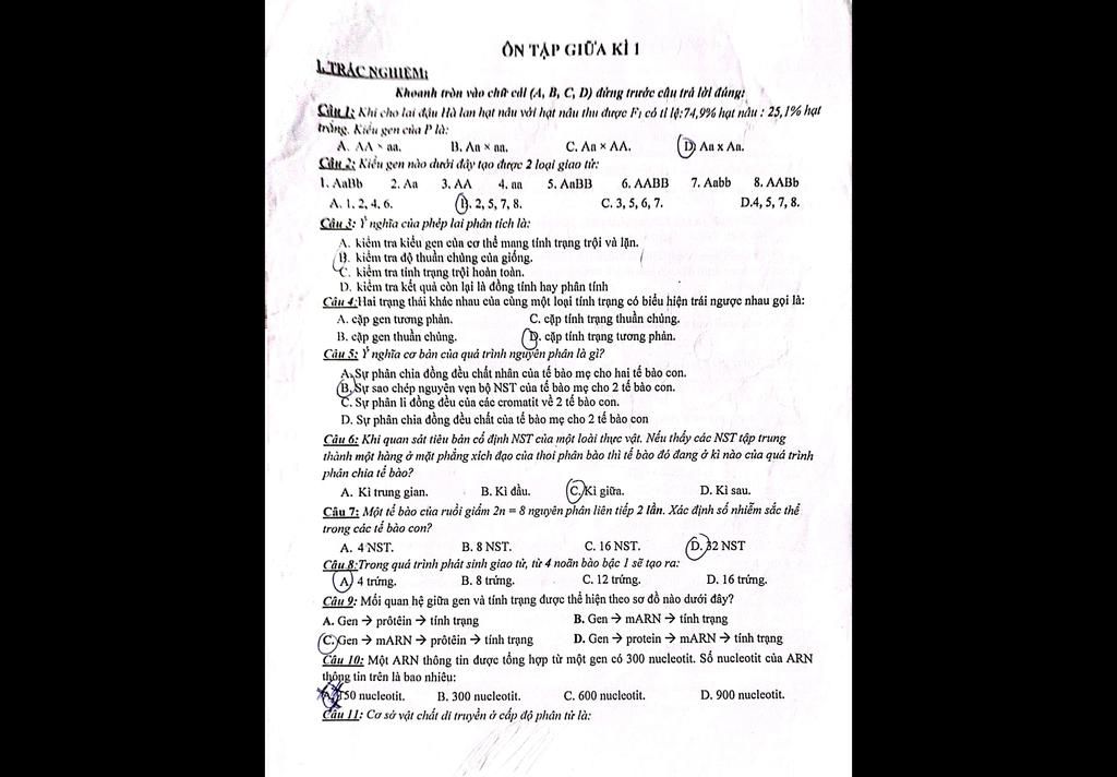Cit là khi cho lại đậu Hà lan hạt nu với hạt nâu thu được F, có tỉ lệ:74,9% hạt năm : 25,1% hạt