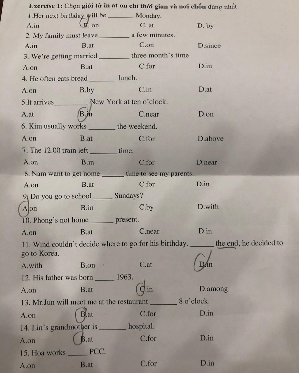 - At: dùng trước mốc thời gian rất ngắn